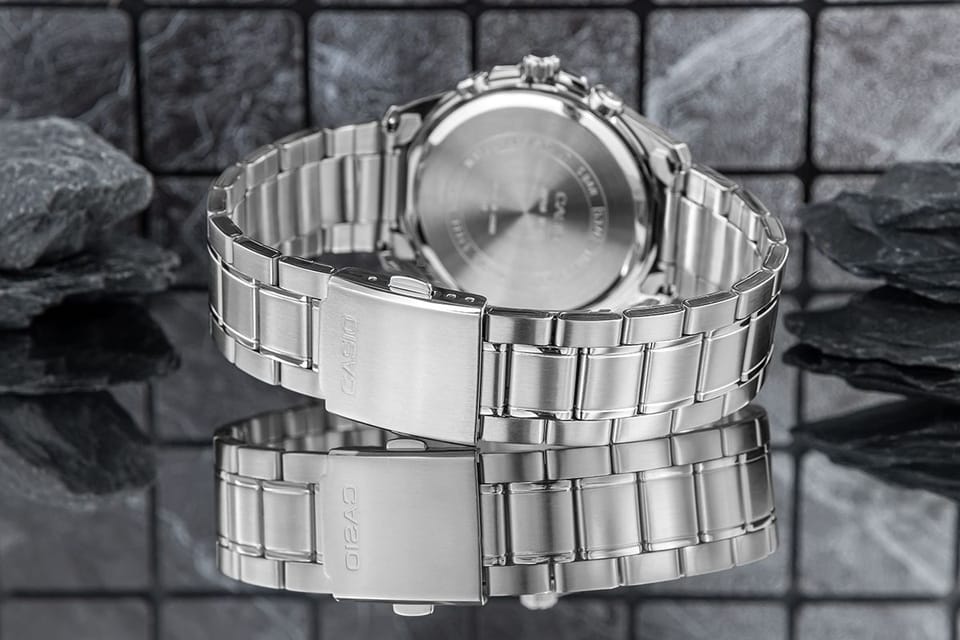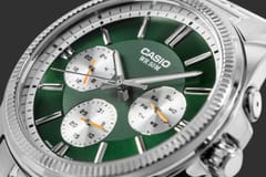 CASIO MTP-1375D-3AVDF to zegarek dla mężczyzny, który lubi mieć wszystko pod kontrolą – styl, czas i jakość. Klasyczna stalowa konstrukcja z powłoką jonową gwarantuje trwałość i odporność na codzienne wyzwania, zielona tarcza z eleganckimi srebrnymi akcentami dodaje charakteru każdej stylizacji – od garnituru po jeansy. Subtarcze pokazujące dzień tygodnia, datę i godzinę w trybie 24h dają Ci pełen obraz sytuacji za jednym spojrzeniem, bez sięgania po telefon. Wodoszczelność do 50 metrów i dokładność mechanizmu (±20 sekund/miesiąc) to spokój ducha – nie musisz się martwić o pogodę, przypadkowe zachlapania czy spóźnienia. Całość tworzy wyrazisty, męski styl, który przyciąga spojrzenia i sprawia, że zegarek prezentuje się znacznie powyżej swojej klasy cenowej.