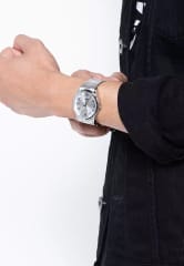 Charakterystyczna srebrna koperta zegarka, wykonana z wysokiej jakości stali szlachetnej, nadaje mu eleganckiego wyglądu, który przyciąga uwagę, ale nie jest przy tym przytłaczający. W połączeniu z srebrną bransoletą, zegarek zyskuje na klasycznym uroku, idealnie komponując się z eleganckimi garniturami czy codziennymi, casualowymi zestawami.