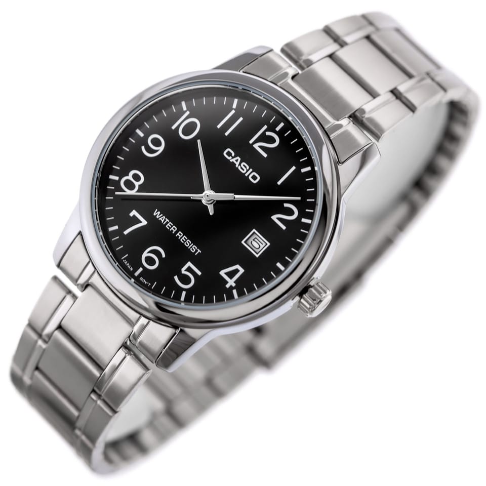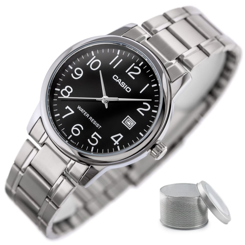 Zegarek Casio MTP-V002D-1BUDF to doskonały wybór dla mężczyzn, którzy cenią sobie ponadczasowy design i niezawodność. Jego precyzyjny mechanizm kwarcowy gwarantuje niezawodność, którą oferuje marka Casio, sprawiając, że zegarek sprawdza się w każdych warunkach. Dzięki klasycznej, czarnej tarczy z wyraźnymi indeksami oraz srebrnymi wskazówkami, zegarek łączy elegancję z prostotą, zapewniając doskonałą czytelność i wygodę użytkowania.