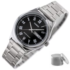 Casio MTP-V006D to model, który powstał z myślą o tych, którzy cenią czystość linii i ponadczasowe wzornictwo - bez zbędnych detali, za to z pełnym szacunkiem do klasyki. Zegarek wyposażono w smukłą, 38-milimetrową kopertę oraz przejrzystą tarczę, na której osadzono delikatne wskazówki i eleganckie rzymskie indeksy. Zegarek zaprojektowany jest w oparciu o ponadczasowy układ wskazówek – godzinowej, minutowej i sekundowej, dlatego z łatwością dopasuje się zarówno do codziennych, jak i bardziej formalnych okazji. Harmonijny układ dopełnia funkcjonalny datownik na godzinie 3 – dyskretny, ale praktyczny. Całość emanuje spokojem, porządkiem i estetyką, która broni się sama. Stalowa bransoleta nadaje zegarkowi wyrafinowany charakter, który odnajduje się zarówno przy mankiecie koszuli, jak i przy swobodniejszym stroju – idealny do pracy, na spotkania, jak i na co dzień.