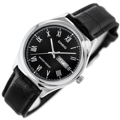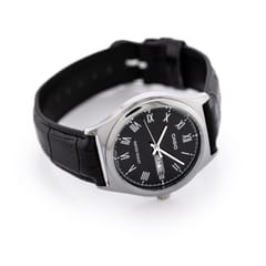 Casio MTP-V006 to propozycja dla tych, którzy cenią wyraźny przekaz i elegancję w najczystszej postaci. Zegarek ten łączy ponadczasową estetykę z codzienną funkcjonalnością – bez zbędnych dodatków, z naciskiem na prostotę i przejrzystość. Zastosowana 38-milimetrowa koperta subtelnie wpisuje się na nadgarstku, a granatowa tarcza z wyraźnymi arabskimi indeksami zapewnia błyskawiczny i wygodny odczyt godziny. Zegarek wyposażono w klasyczny układ trzech wskazówek – godzinowej, minutowej i sekundowej – oraz praktyczny datownik wskazujący dzień tygodnia i miesiąca, umieszczony na godzinie trzeciej. Koperta w odcieniu srebra dodaje całości wyrafinowanego charakteru, a czarny skórzany pasek stanowi idealne dopełnienie eleganckiego stylu. Niezależnie od tego, czy nosisz go do garnituru, czy do półformalnej koszuli – ten zegarek zawsze prezentuje się z klasą.