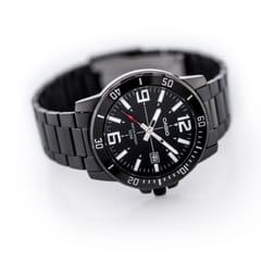 Wykonana z wysokiej jakości stali nierdzewnej, o podwójnym rodzaju wykończenia: matowym środku oraz szczotkowanych brzegach nadaje zegarkowi unikalny wygląd. Stal nierdzewna jest materiałem odpornym na uszkodzenia mechaniczne, co sprawia, że bransoleta dobrze znosi codzienne użytkowanie i zachowuje swój estetyczny wygląd przez długi czas. Zegarek jest wyposażony w specjalne zapięcie, które pozwala na regulację długości bransolety bez potrzeby usuwania ogniw. Bransoleta posiada solidne, zatrzaskowe zapięcie, które zapobiega przypadkowemu rozpięciu zegarka, co jest szczególnie ważne w sytuacjach aktywnych lub intensywniejszych ruchach ręki.