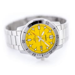 Tarcza zegarka utrzymana jest w żółtej kolorystyce co dodaje jej głębi i wyjątkowego charakteru. Model ten posiada wyraźne wskazówki oraz indeksy, zapewniając doskonałą czytelność, a dodatkowy datownik na godzinie 3 zwiększa praktyczność tego modelu. Szkło mineralne chroniące tarczę jest odporne na zarysowania, co gwarantuje, że zegarek będzie prezentował się nienagannie przez długie lata.