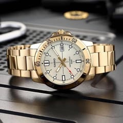 CASIO MTP-VD01G-9E to zegarek, który doskonale sprawdzi się zarówno w pracy, jak i podczas spotkań towarzyskich. Jego ponadczasowy design i wysokiej jakości wykonanie sprawiają, że to więcej niż czasomierz – to stylowy dodatek, który podkreśli charakter i klasę swojego właściciela. To idealny wybór dla mężczyzn, którzy szukają zegarka łączącego w sobie elegancję, funkcjonalność i niezawodność.