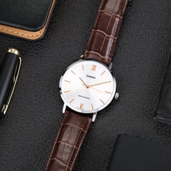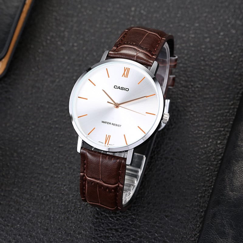 Wykonany z wysokiej jakości materiałów, CASIO MTP-VT01L-7B2 jest nie tylko stylowy, ale także wyjątkowo trwały i komfortowy w noszeniu. Jego solidna koperta ze szlachetnej oraz wygodny, skórzany pasek w brązowym odcieniu zapewnia idealne dopasowanie do nadgarstka, a jednocześnie jest wygodny, przez co nadaje się do codziennego użytkowania. Wodoszczelność do 30 metrów (3 ATM) sprawia, że zegarek jest gotowy na codzienne wyzwania – czy to podczas deszczu, czy przy okazji szybkiego prysznica. To praktyczny wybór dla mężczyzn, którzy cenią sobie niezawodność.