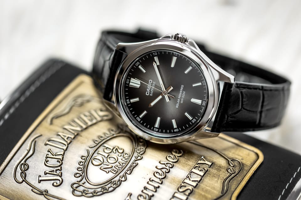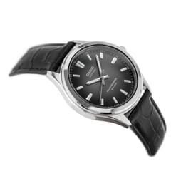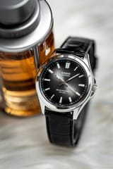 Casio MTS-RS100L-1A to elegancki zegarek męski łączący klasyczny styl z nowoczesnymi rozwiązaniami. Model wyróżnia się głęboką, czarną tarczą z czytelnymi indeksami oraz wyraźnym datownikiem, co sprawia, że jest jednocześnie praktyczny i stylowy. Solidna koperta oraz skórzany pasek podkreślają ponadczasowy charakter tego czasomierza, dzięki czemu świetnie sprawdzi się zarówno w codziennym użytkowaniu, jak i jako dodatek do bardziej formalnych stylizacji.