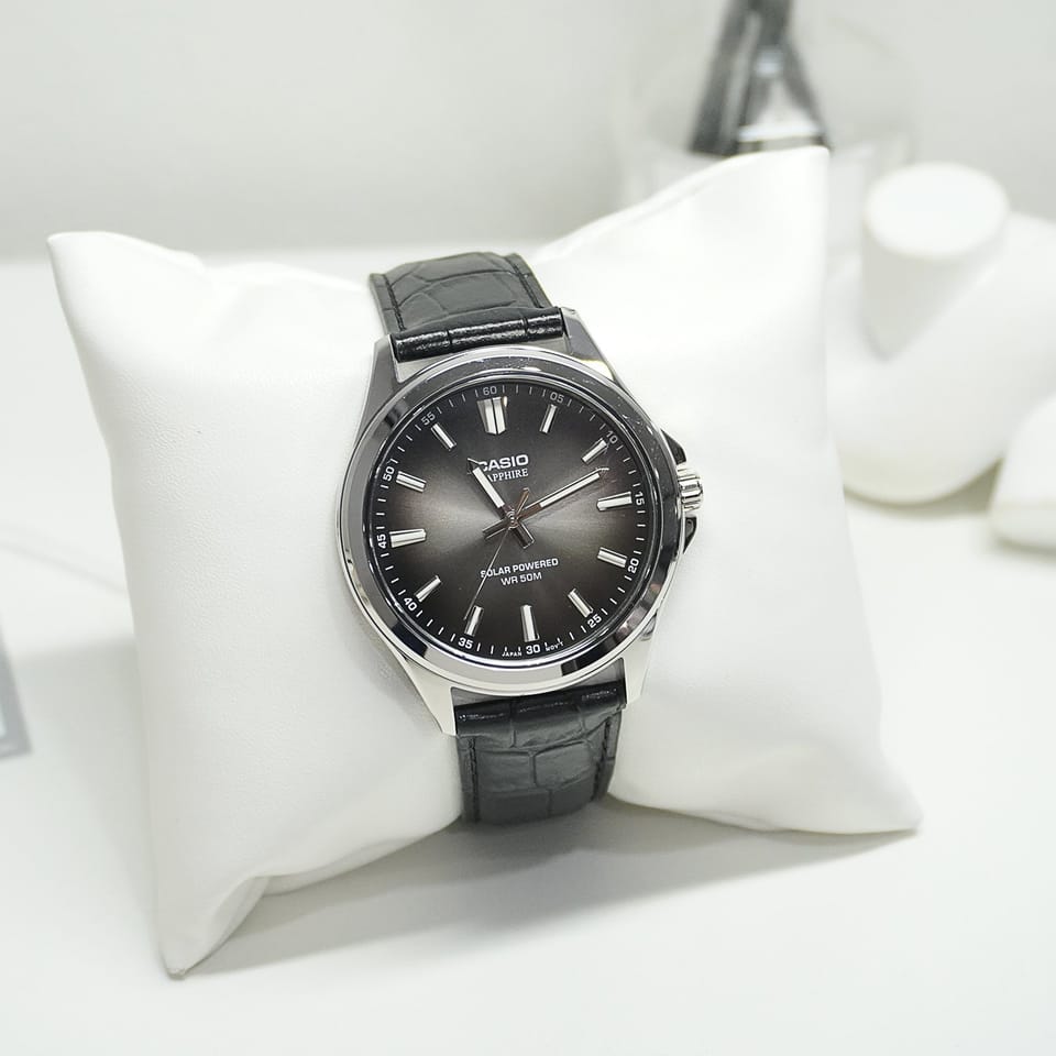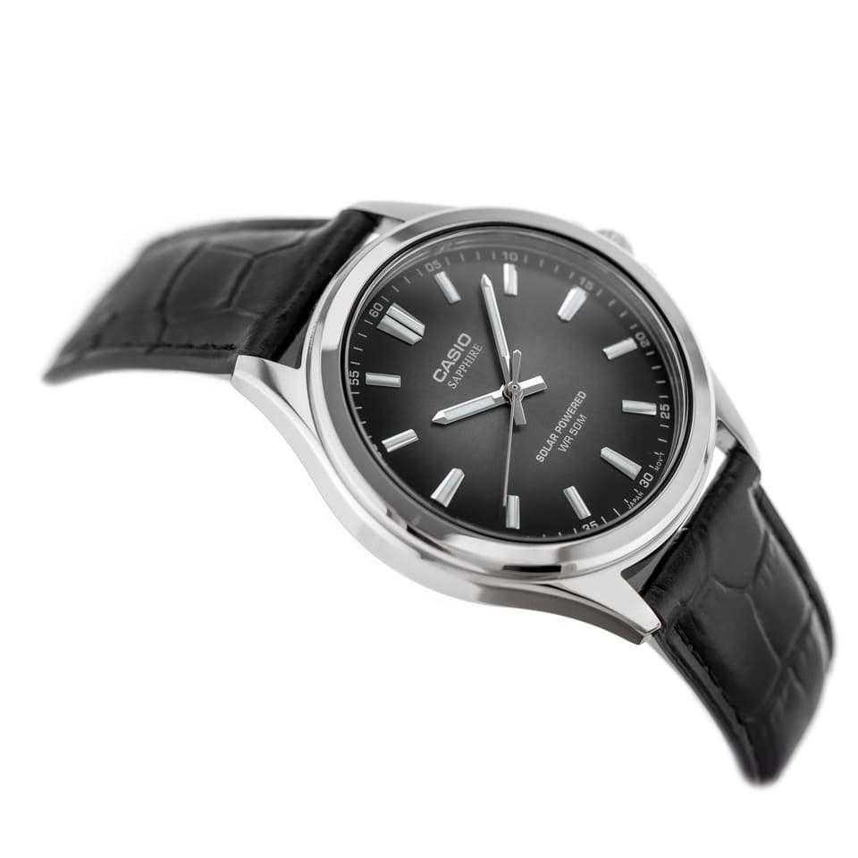 Zastosowany mechanizm solarno-kwarcowy eliminuje konieczność częstej wymiany baterii — zegarek ładuje się energią światła, zapewniając bezawaryjne działanie przez długi czas. Wodoszczelność na poziomie 50 metrów chroni przed zachlapaniami i deszczem, a mineralne szkło zapewnia dobrą odporność na zarysowania. Casio MTS-RS100L-1A to propozycja dla mężczyzn ceniących elegancję, funkcjonalność i niezawodność w klasycznej formie.