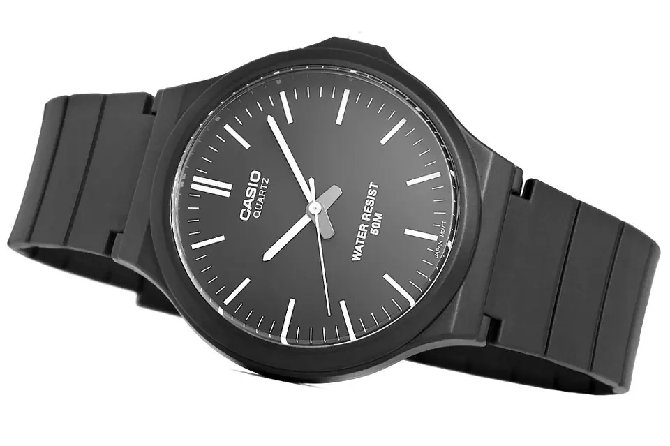 Męski model zegarka CASIO MW-240 łączący minimalizm, funkcjonalność i komfort w męskim wydaniu. Lekka konstrukcja zegarka (zaledwie 35g!) sprawia, że jest niemal niewyczuwalny na nadgarstku. Elastyczny, matowy pasek z żywicy dopasowuje się do ruchów, jest odporny na zużycie i gotowy na każdą sytuację – od spotkań po trening. Duże kontrastowe indeksy pozwalają sprawdzić godzinę w mgnieniu oka. Wytrzymałe szkiełko Resin Glass gwarantuje odporność na codzienne użytkowanie, a wodoodporność 5 BAR daje pewność, że zachlapania, deszcz czy szybki prysznic nie będą problemem.
