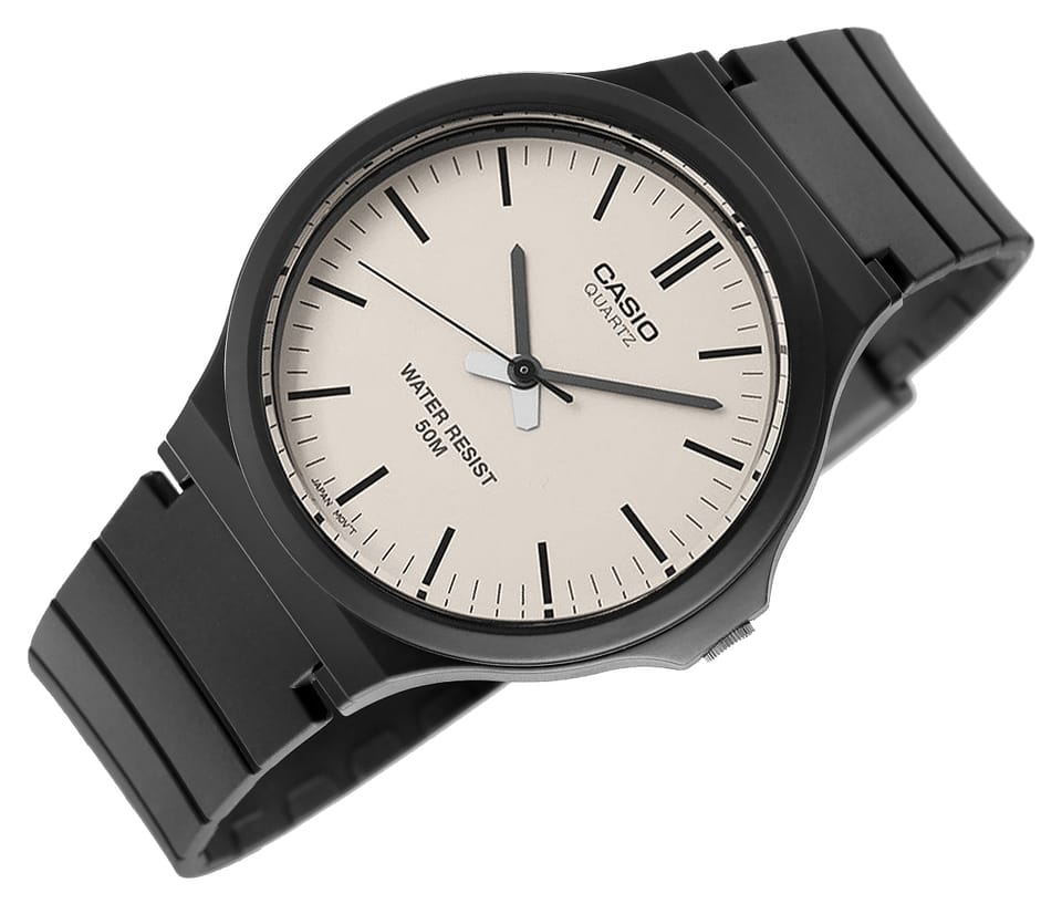 Męski model zegarka CASIO MW-240 łączący minimalizm, funkcjonalność i komfort w męskim wydaniu. Lekka konstrukcja zegarka (zaledwie 35g!) sprawia, że jest niemal niewyczuwalny na nadgarstku. Elastyczny, matowy pasek z żywicy dopasowuje się do ruchów, jest odporny na zużycie i gotowy na każdą sytuację – od spotkań po trening. Duże kontrastowe indeksy pozwalają sprawdzić godzinę w mgnieniu oka. Wytrzymałe szkiełko Resin Glass gwarantuje odporność na codzienne użytkowanie, a wodoodporność 5 BAR daje pewność, że zachlapania, deszcz czy szybki prysznic nie będą problemem.