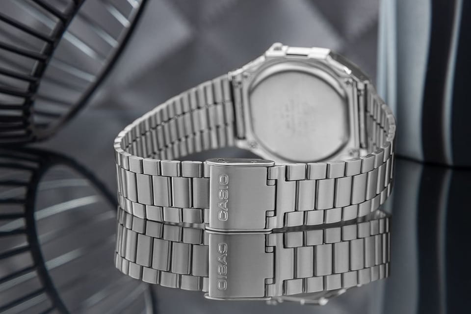 Wykonana z wysokiej jakości stali nierdzewnej, gwarantującej trwałość i wygodę noszenia przez cały dzień. Jej klasyczny wygląd idealnie współgra z klimatem vintage, a subtelne szczotkowane wykończenie nadaje zegarkowi ponadczasowy charakter. Logo Casio na sprzączce.