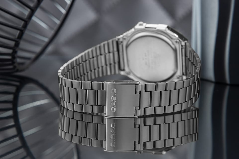 Wykonana z wysokiej jakości stali nierdzewnej, gwarantującej trwałość i wygodę noszenia przez cały dzień. Jej klasyczny wygląd idealnie współgra z klimatem vintage, a subtelne szczotkowane wykończenie nadaje zegarkowi ponadczasowy charakter. Logo Casio na sprzączce.