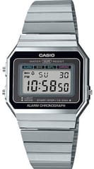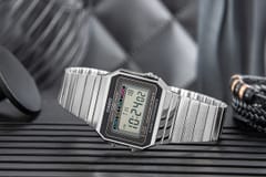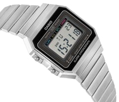 Zanurz się w klimacie retro z zegarkiem z kolekcji CASIO Vintage A700W, który łączy oldschoolowy charakter z nowoczesnym komfortem noszenia. Ultrasmukła koperta (6 mm!) subtelnie oplata nadgarstek, tworząc lekką, niemal biżuteryjną formę, która nie przytłacza, lecz przyciąga spojrzenia. Model posiada wskazanie czasu w formie cyfrowej: godzina, minuta, sekunda, oznaczenie pory dnia (PM), data, dzień tygodnia. A gdy przychodzi moment działania – ma wszystko, czego trzeba. Wyposażony w precyzyjny stoper 1/100 sekundy, codzienny alarm i odporną za zachlapania konstrukcję, idealnie odnajduje się w rytmie codzienności. Niezależnie, czy mierzysz czas, czy tylko go celebrujesz – masz wszystko pod kontrolą. A gdy dzień dobiega końca, podświetlenie LED z bursztynowym światłem wprowadza klimatyczny nastrój, odsłaniając tarczę w subtelnej poświacie. Dopełnieniem całości jest bransoleta ze stali nierdzewnej – trwała, wygodna i ponadczasowa jak styl, który reprezentujesz.