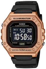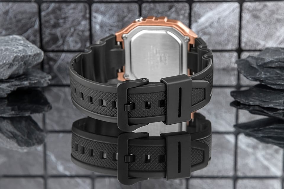 Casio W-218HM-5BVDF to esencja klasycznego stylu Casio w nowoczesnym, sportowym wydaniu: wyrazisty, prostokątny wyświetlacz LCD w solidnej kopercie, czytelny na pierwszy rzut oka, z subtelnymi akcentami, które dodają mu świeżości i uniwersalności. Zegarek został stworzony do codziennego tempa: wodoszczelność 50 m, podświetlenie LED dla pewnego odczytu po zmroku, 7-letnia bateria dla długiej niezawodności, a także praktyczny zestaw funkcji – stoper 1/100 s (do 60 min), alarm dzienny i sygnał pełnej godziny, automatyczny kalendarz oraz format 12/24 h. Lekki i wygodny, z szkiełkiem z tworzywa (Resin Glass) i wytrzymałym paskiem z żywicy, świetnie sprawdzi się zarówno na treningu, jak i w codziennych stylizacjach. Jeśli szukasz bezkompromisowej prostoty połączonej z legendarną trwałością Casio, W-218HM-7AVDF będzie strzałem w dziesiątkę.