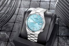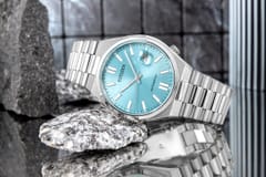Niebieska tarcza o subtelnym szlifie słonecznym przyciąga wzrok i efektownie pracuje ze światłem, nadając zegarkowi głębi oraz wyrafinowanego charakteru. Proste, nakładane indeksy oraz smukłe wskazówki zapewniają wysoką czytelność i elegancki wygląd, a ich staranne wykończenie podkreśla dbałość o detale. Datownik z lupą na godzinie trzeciej zwiększa funkcjonalność, umożliwiając szybki i wygodny odczyt dnia miesiąca.