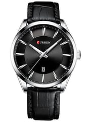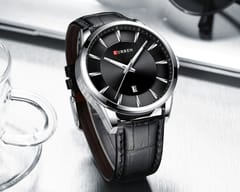 Zegarek męski CURREN 8365 to elegancki męski zegarek idealny zarówno do eleganckiego ubioru, jak i do noszenia na co dzień. Na czarnej tarczy ze srebrnym wykończeniem, otoczonej srebrnym pierścieniem znajdziemy datownik dnia miesiąca oraz subtarcze będące wskazaniami chronografu i czasu dobowego.