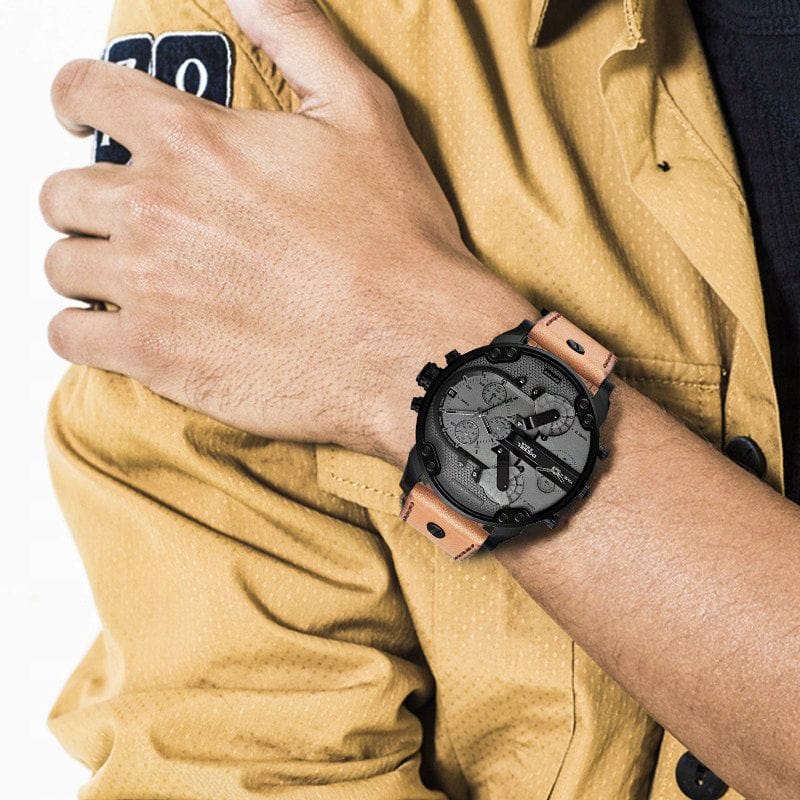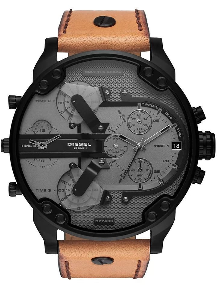Zegarek męski Diesel Mr. Daddy 2.0 DZ7406 to duży męski zegarek. Brązowy skórzany pasek doskonale komponuje się z czarną kopertą, którą wykonano z hipoalergicznej stali szlachetnej. Na tarczy zamontowano 4 oddzielne mechanizmy mierzenia czasu. Całość pokryta szkłem mineralnym gwarantuje wytrzymałość na zarysowania i pęknięcia. Wodoodporność na 30 metrów chroni przed zachlapaniem. Zastosowany mechanizm kwarcowy jest niezawodny. Model Diesel Mr. Daddy 2.0 DZ7406 to połączenie niewymuszonej elegancji ze sportowym charakterem - musi przyciągać uwagę!