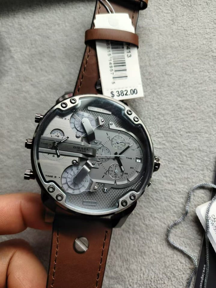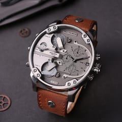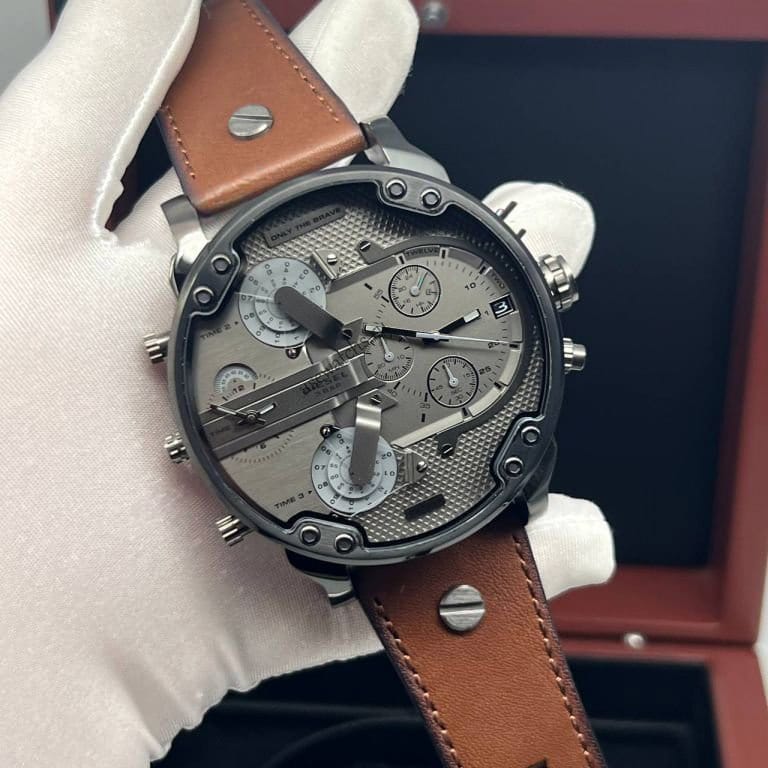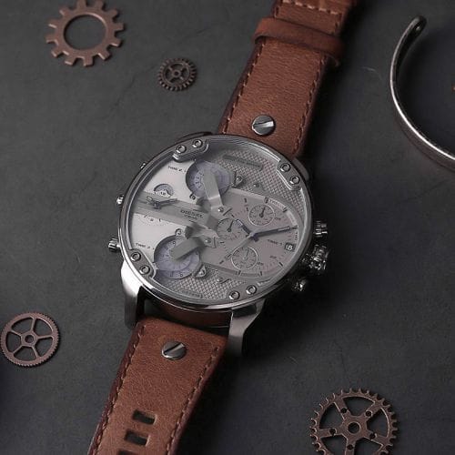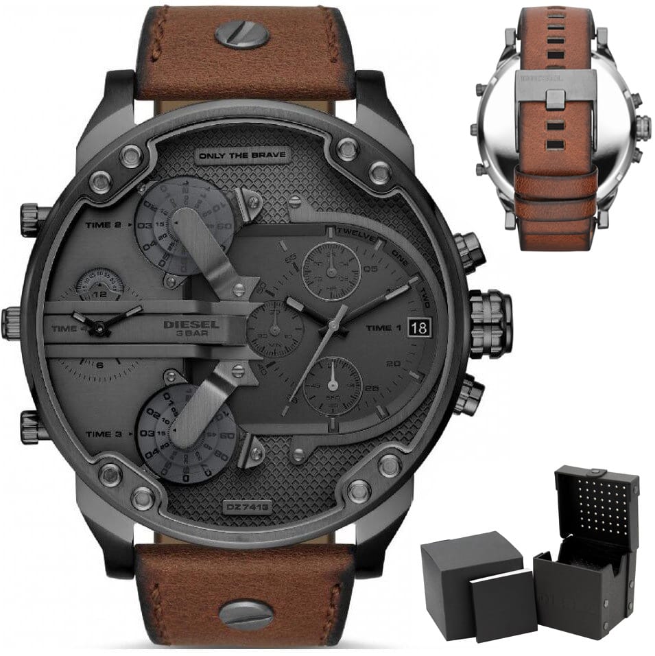 Zegarek męski Diesel Mr. Daddy 2.0 DZ7413 to duży męski zegarek. Brązowy skórzany pasek doskonale komponuje się z czarną kopertą, którą wykonano z hipoalergicznej stali szlachetnej. Na tarczy zamontowano 4 oddzielne mechanizmy mierzenia czasu. Całość pokryta szkłem mineralnym gwarantuje wytrzymałość na zarysowania i pęknięcia. Wodoodporność na 30 metrów chroni przed zachlapaniem. Zastosowany mechanizm kwarcowy jest niezawodny. Model Diesel Mr. Daddy 2.0 DZ7413 to połączenie niewymuszonej elegancji ze sportowym charakterem - musi przyciągać uwagę!