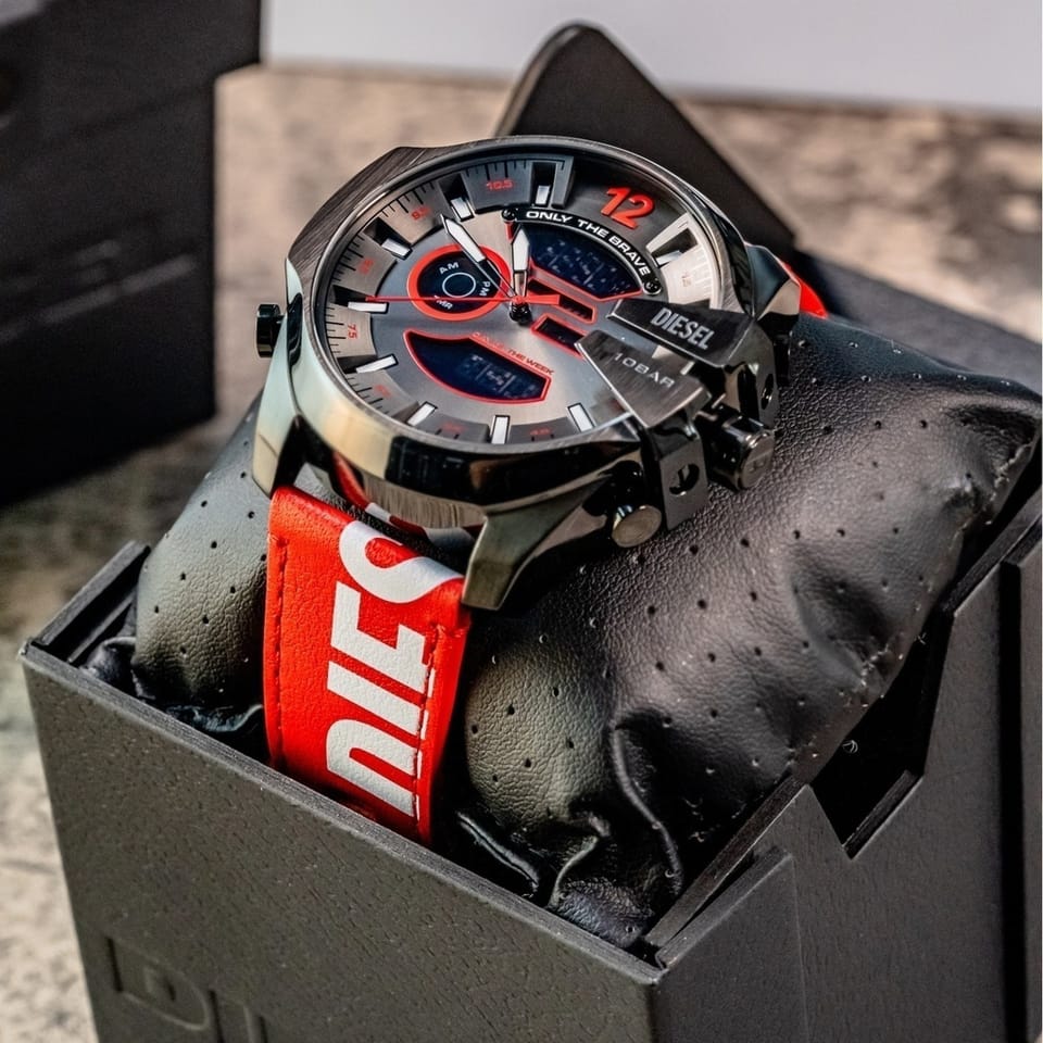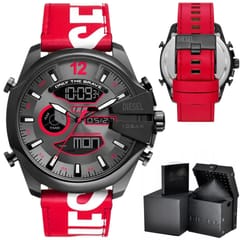 Zegarek męski Diesel MEGA CHIEF MULTIFUNCTION DZ4647 to połączenie sportowego designu i funkcjonalności, stworzone z myślą o dynamicznych mężczyznach. Jego trwały czerwony skórzany pasek z białym logo i stalowa koperta zapewniają wygodę i solidność, a czerwona kolorystyka dodaje nowoczesnego charakteru.