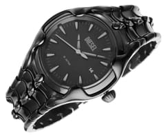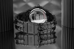 Jego potężna, czarna koperta o futurystycznym, organicznym kształcie, przypomina rzeźbę, która płynnie przechodzi w bransoletę o nietypowym designie. To zegarek, który od razu wyróżnia się w tłumie – jego design jest nietuzinkowy i odważny, dla mężczyzny, który zawsze stawia na indywidualność i siłę wyrazu. Bransoleta tego modelu to arcydzieło designu – ogniwa dodają zegarkowi dodatkowej głębi i wyrazistości. Jej konstrukcja imituje coś dzikiego, surowego, niemal jak skóra zwierzęcia gotowego do akcji. To detal, który pobudza wyobraźnię i sprawia, że czujesz się niepokonany.