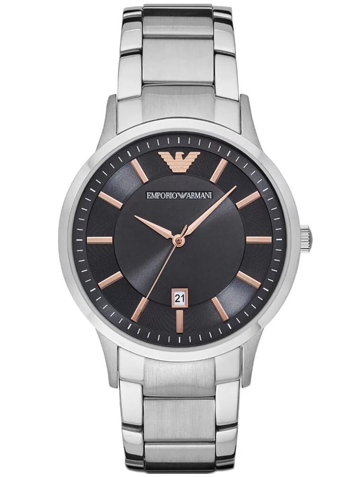 Męski zegarek Emporio Armani Renato AR11179 to klasyczny męski zegarek, idealny zarówno do eleganckiego ubioru, jak i do noszenia na co dzień. Koperta oraz bransoleta zostały wykonana ze stali szlachetnej, co gwarantuje jej wieloletnią odporność na zniszczenie. Na czarnej tarczy zabezpieczonej mineralnym szkłem znajdziemy datownik wskazujący dzień miesiąca.
