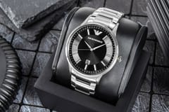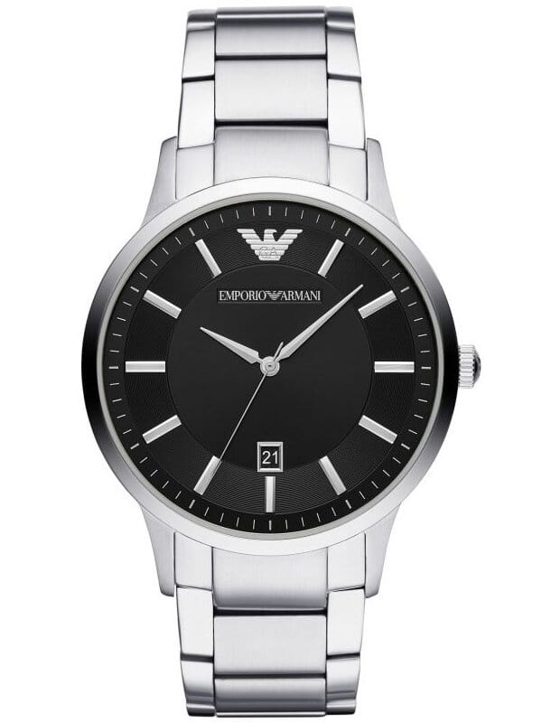 Męski zegarek Emporio Armani Renato AR11179 to klasyczny męski zegarek, idealny zarówno do eleganckiego ubioru, jak i do noszenia na co dzień. Koperta oraz bransoleta zostały wykonana ze stali szlachetnej, co gwarantuje jej wieloletnią odporność na zniszczenie. Na czarnej tarczy zabezpieczonej mineralnym szkłem znajdziemy datownik wskazujący dzień miesiąca.