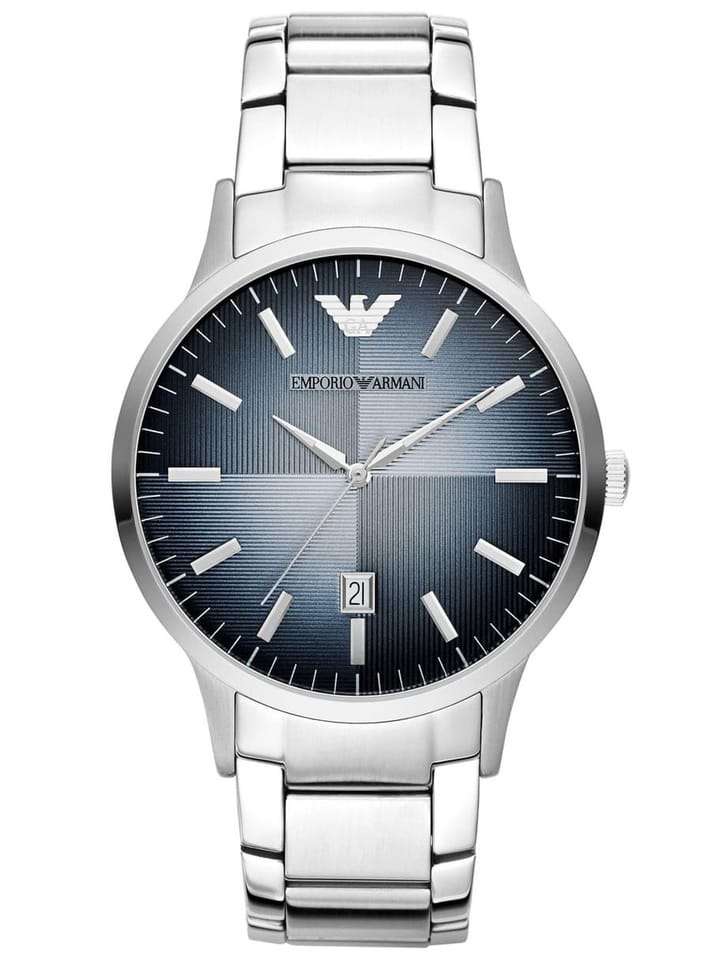 Męski zegarek Emporio Armani Renato AR11182 to klasyczny męski zegarek, idealny zarówno do eleganckiego ubioru, jak i do noszenia na co dzień. Koperta oraz bransoleta zostały wykonana ze stali szlachetnej, co gwarantuje jej wieloletnią odporność na zniszczenie. Na granatowej tarczy zabezpieczonej mineralnym szkłem znajdziemy datownik wskazujący dzień miesiąca.