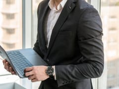 Model ten posiada matową srebrną kopertę wykonaną z wysokiej jakości stali nierdzewnej zwieńczoną pierścieniem w kolorze czarnym oraz czarny skórzany pasek. Klasa wodoszczelności czasomierza to WR30, co gwarantuje szczelność zegarka w przypadku drobnych zachlapań.