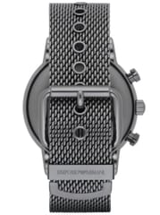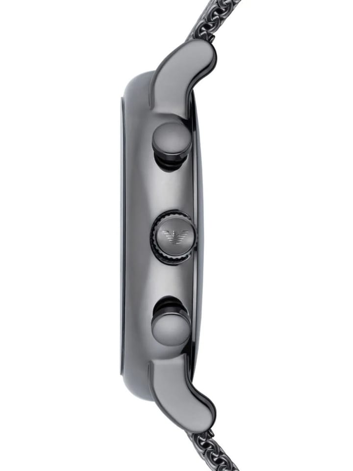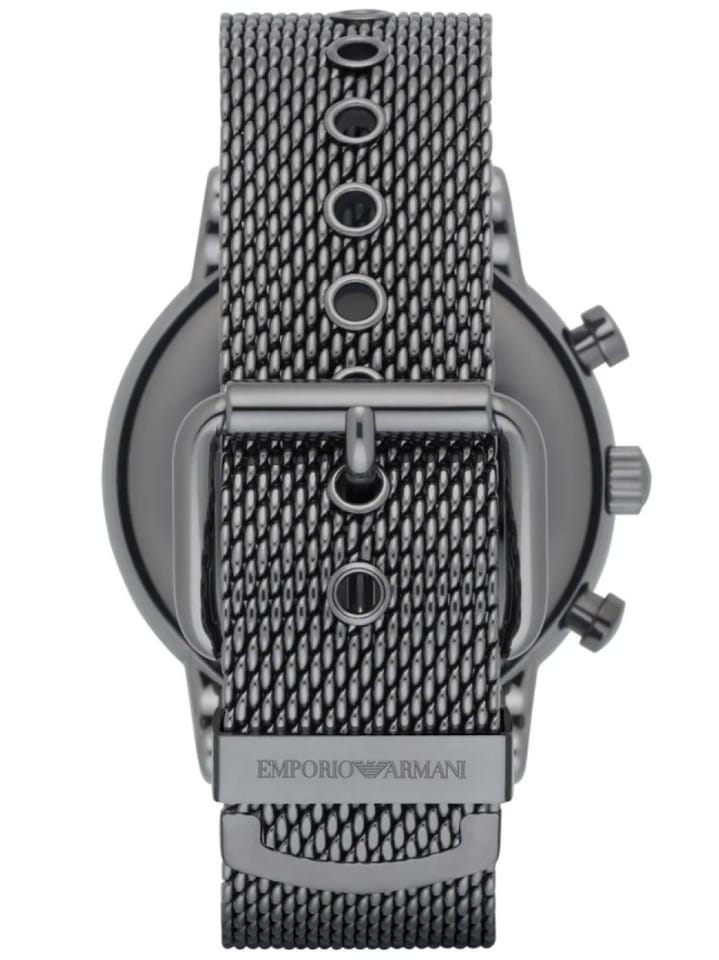 Męski zegarek Emporio Armani AR1979 z serii Luigi to stylowy męski zegarek, idealny zarówno do eleganckiego ubioru, jak i do noszenia na co dzień. Bransoleta typu mesh oraz koperta wykonane zostały ze stali szlachetnej z powłoką w odcieniu grafitowym. Na granatowej tarczy zabezpieczonej mineralnym szkłem znajdziemy datownik wskazujący dzień miesiąca oraz subtarcze będące wskazaniami chronografu oraz czasu dobowego.