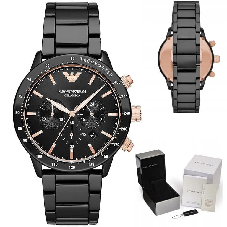 Zegarek męski Emporio Armani Mario Ceramic Chronograph AR70002 jest nietuzinkowym modelem - bransoleta o raz koperta wykonane zostały z ceramiki. Dostępne funkcje to z datownik wskazujący dnia miesiąca, chronograf, tachymetr i 24-godzinne wskazanie czasu.