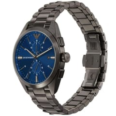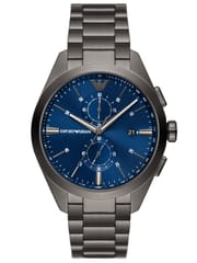 Zegarek Emporio Armani CLAUDIO AR11481 to nietuzinkowy męski czasomierz, idealny zarówno do eleganckiego ubioru, jak i do noszenia na co dzień. Kopertę wykonano ze stali szlachetnej z wysokiej jakości powłoką w kolorze grafitowym, co gwarantuje jej wieloletnią odporność na zniszczenie. Na tarczy w kolorze granatowym zabezpieczonej szkłem mineralnym znajdziemy datownik dnia miesiąca oraz wskazania chronografu i czasu dobowego. Całości dopełnia srebrna bransoleta ze stali szlachetnej.