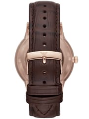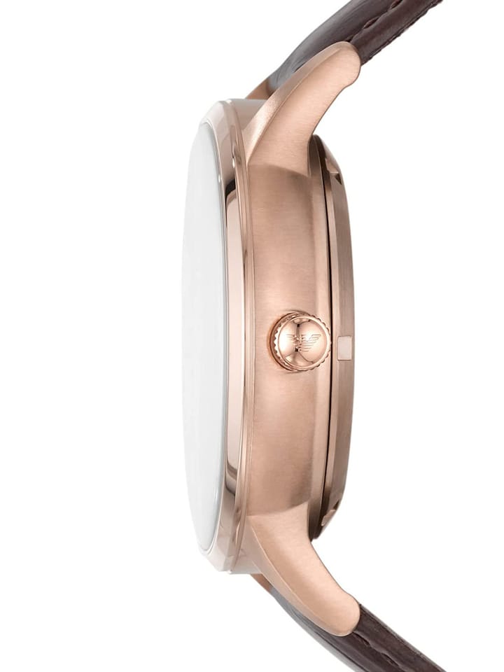 Zegarek męski Emporio Armani jest przykładem eleganckiego, klasycznego zegarka automatycznego. Samoczynnie nakręca się, wykorzystując energię kinetyczną powstającą podczas ruchów ręki. Tarcza typu skeleton umożliwia nam obserwację pracy mechanizmu. Pasek ze skóry naturalnej w kolorze brązowym zapewnia elegancje oraz swobodę noszenia. Zegarek Emporio Armani bedzię idealnym dodatkiem do męskiej garderoby.