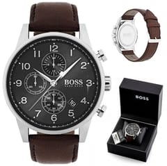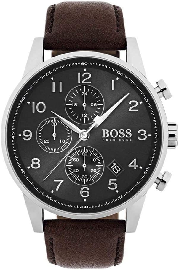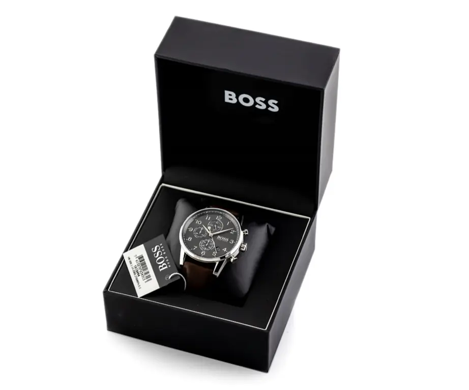 Zegarek niemieckiej marki Hugo Boss 1513494 wyposażono w precyzyjny japoński mechanizm kwarcowy, zasilany baterią o żywotności 2 lat. Czarny cyferblat czasomierza z wyraźnymi cyframi, pokryto szkiełkiem mineralnym, odpornym na stłuczenia. Kopertę wykonana ze stali szlachetnej umocowano na pasku skórzanym w kolorze brązowym.