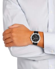 Zegarek męski Hugo Boss 1513579 z serii Talent to nietuzinkowy zegarek dla prawdziwych mężczyzn. Na czarnej tarczy zabezpieczonej trwałym mineralnym szkłem i otoczonej pierścieniem znajdziemy datownik dnia miesiąca oraz subtarcze będące wskazaniami chronografu oraz czasu dobowego.