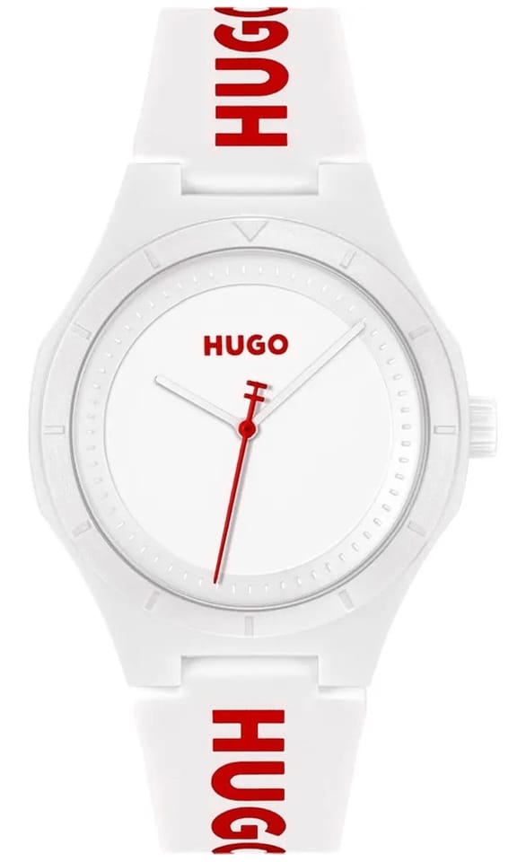 Biała tarcza to kwintesencja prostoty, przełamana czerwonym logo Hugo i dynamicznym sekundnikiem. Ten akcent to jak iskra energii na czystym płótnie – podkreśla Twoją siłę i gotowość do działania. Każde spojrzenie na zegarek przypomina, że prostota może być najpotężniejszym narzędziem. Solidny, biały pasek z dużym, czerwonym logo Hugo to coś więcej niż detal – to wyraz odwagi i pewności siebie. Idealnie łączy sportowy luz z miejskim stylem, tworząc zegarek, który zawsze jest w centrum uwagi. Bez względu na to, czy nosisz go na co dzień, czy na bardziej swobodne wyjścia, Hugo White zawsze podkreśla Twój wyjątkowy charakter.