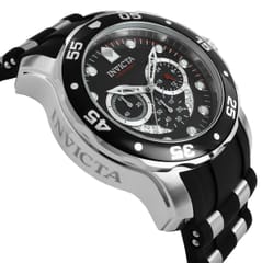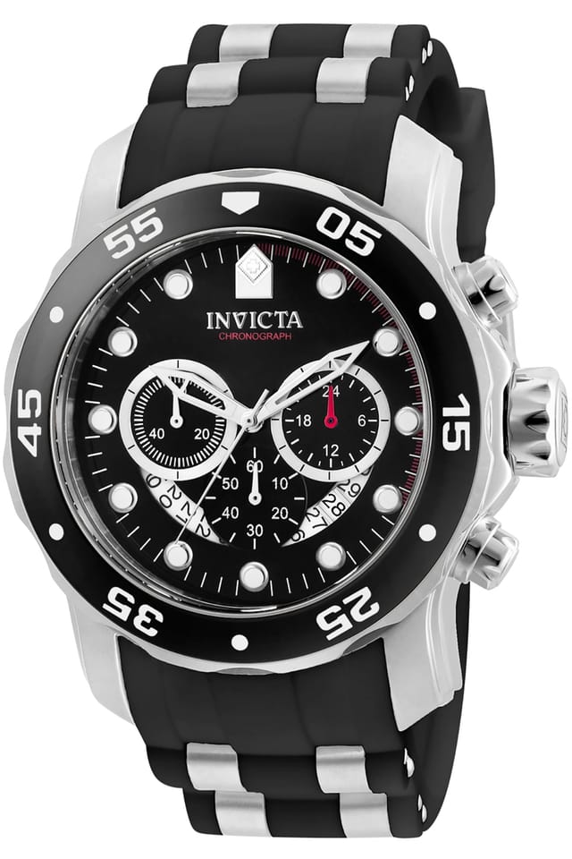 Marka: Invicta Symbol: 6977 Model: PRO DIVER Mechanizm: Kwarcowy, japoński VD53 Tarcza: Analogowa z chronografami oraz datownikiem dni miesiąca Koperta: Stal szlachetna Szkiełko: Flame Fusion Pasek: Silikonowy Podświetlenie: Fluorescencja Tritnite Wodoszczelność: 100 M Antyalergiczny: Tak - nie zawiera niklu