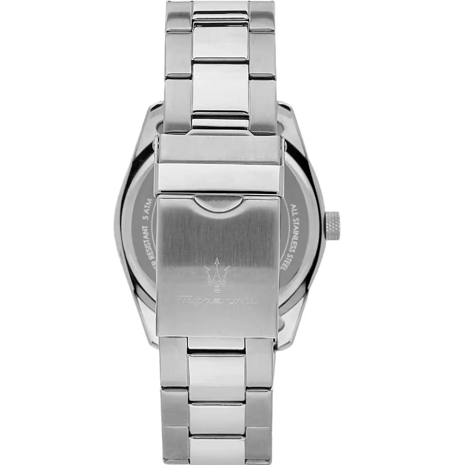 Zegarek Maserati Attrazione R8853151013 to klasyczny model, który przypadnie do gustu każdemu mężczyźnie. Po zegarki tej marki chętnie sięgają fani włoskiej, luksusowej marki Maserati, jak i osoby poszukujące czasomierza do noszenia na co dzień. Zegarek ten został wykonany w całości ze stali szlachetnej, która jest odporna na korozję. Niebieska tarcza z datownikiem przykryta jest szkiełkiem mineralnym. Za niezawodne działanie urządzenia odpowiada dokładny mechanizm kwarcowy zasilany baterią. Zegarek Maserati Attrazione R8853151013 posiada klasę wodoszczelności 5 ATM, co oznacza, że jest odporny na kontakt z wodą.