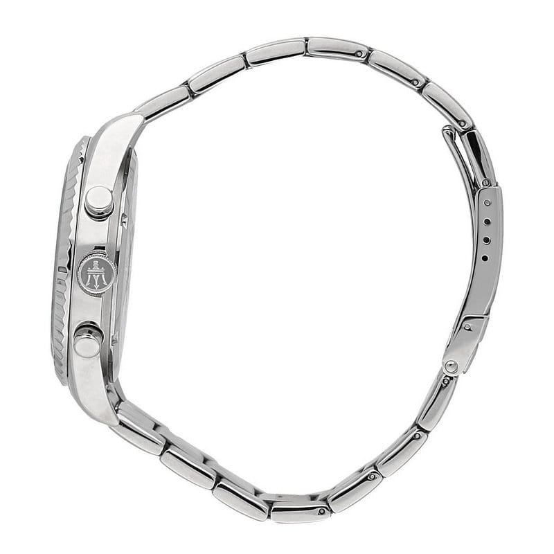 Zegarek Maserati COMPETIZIONE R8853100018 to klasyczny model, który przypadnie do gustu każdemu mężczyźnie. Po zegarki tej marki chętnie sięgają fani włoskiej, luksusowej marki Maserati, jak i osoby poszukujące czasomierza do noszenia na co dzień. Zegarek ten został wykonany w całości ze stali szlachetnej, która jest odporna na korozję. Na srebrnej tarczy zabezpieczonej mineralnym szkłem znajdziemy subtarcze będące wskazaniami dnia tygodnia, dnia miesiąca i czasu dobowego. Za niezawodne działanie urządzenia odpowiada dokładny mechanizm kwarcowy zasilany baterią. Zegarek Maserati COMPETIZIONE R8853100018 posiada klasę wodoszczelności 10 ATM, co oznacza, że jest odporny na kontakt z wodą.