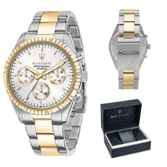Zegarek Maserati COMPETIZIONE R8853100021 to klasyczny model, który przypadnie do gustu każdemu mężczyźnie. Po zegarki tej marki chętnie sięgają fani włoskiej, luksusowej marki Maserati, jak i osoby poszukujące czasomierza do noszenia na co dzień. Zegarek ten został wykonany w całości ze stali szlachetnej, która jest odporna na korozję. Na białej tarczy zabezpieczonej mineralnym szkłem znajdziemy subtarcze będące wskazaniami dnia tygodnia, dnia miesiąca i czasu dobowego. Za niezawodne działanie urządzenia odpowiada dokładny mechanizm kwarcowy zasilany baterią. Zegarek Maserati COMPETIZIONE R8853100021 posiada klasę wodoszczelności 10 ATM, co oznacza, że jest odporny na kontakt z wodą, można w nim bezpiecznie pływać.