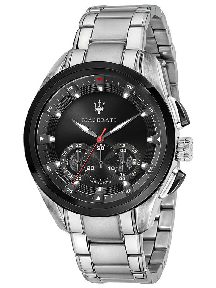 Zegarek Maserati COMPETIZIONE R8873612015 to klasyczny model, który przypadnie do gustu każdemu mężczyźnie. Po zegarki tej marki chętnie sięgają fani włoskiej, luksusowej marki Maserati, jak i osoby poszukujące czasomierza do noszenia na co dzień. Zegarek ten został wykonany w całości ze stali szlachetnej, która jest odporna na korozję. Na czarnej tarczy zabezpieczonej mineralnym szkłem znajdziemy chronograf, sekundnik i stoper. Za niezawodne działanie urządzenia odpowiada dokładny mechanizm kwarcowy zasilany baterią. Zegarek Maserati COMPETIZIONE R8873612015 posiada klasę wodoszczelności 10 ATM, co oznacza, że jest odporny na kontakt z wodą.