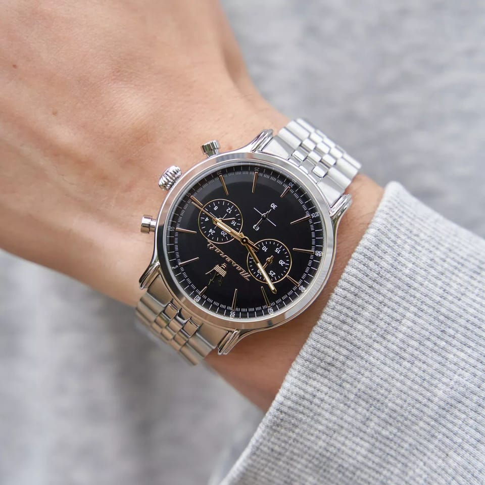 Zegarek Maserati R8873618017 EPOCA posiada mechanizm kwarcowy zasilany baterią. Kopertę w kolorze srebrnym wykonano z hipoalergicznej stali szlachetnej. Na czarnej tarczy czas precyzyjnie odmierzają złote wskazówki pokryte warstwą fluorescencyjną. Dodatkowy atut tego modelu to chronograf oraz wodoszczelność na poziomie 10 ATM co pozwala nam na swobodne pływanie. Model R8873618017 to połączenie niewymuszonej elegancji ze sportowym charakterem - musi przyciągać uwagę!