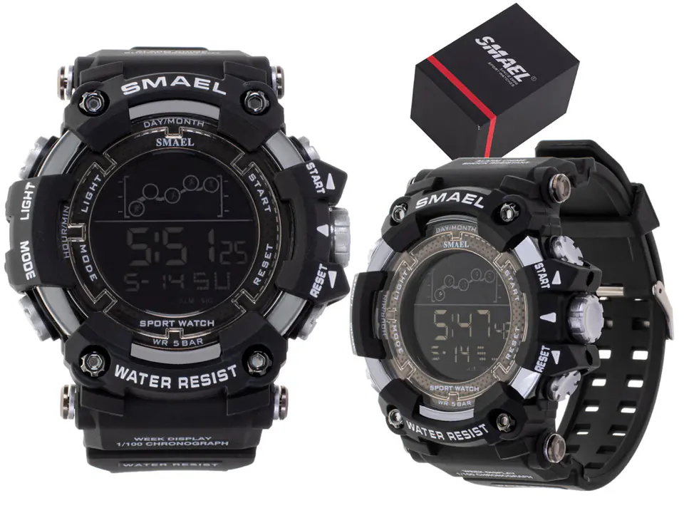 ZEGAREK MĘSKI MILITARNY WODOODPORNY LED SMAEL CZARNY