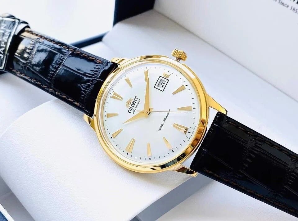 Czasomierz Orient Bambino 2nd Generation Bambino FAC00003W0 to elegancki funkcjonalny męski zegarek do codziennego użytku jak i na wyjątkowe okazje. Elegancką białą tarczę przykryto sferycznym szkiełkiem mineralnym, dobrze chroniącym zarówno przed ewentualnymi zarysowaniami. Czasomierz działa w oparciu o niesłychanie dokładny japoński mechanizm z automatycznym naciągiem. Model Orient Bambino 2nd Generation Bambino FAC00003W0 wyposażono dodatkowo w datownik dni miesiąca, zlokalizowany przy godzinie 3.