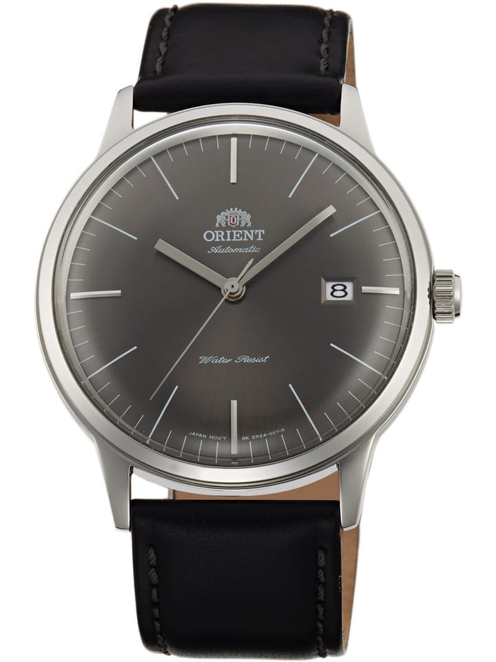 Czasomierz Orient Classic Automatic Bambino FAC00005W0 to elegancki funkcjonalny męski zegarek do codziennego użytku jak i na wyjątkowe okazji. Czytelną, czarną tarczę przykryto sferycznym szkiełkiem mineralnym, dobrze chroniącym zarówno przed ewentualnymi zarysowaniami. Czasomierz działa w oparciu o niesłychanie dokładny japoński mechanizm z automatycznym naciągiem. Model Orient wyposażono dodatkowo w datownik dni miesiąca, zlokalizowany przy godzinie 3.