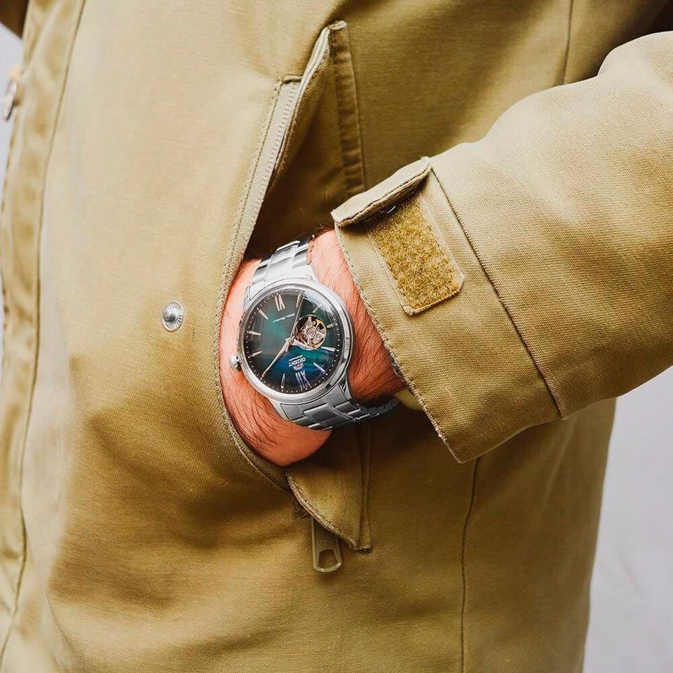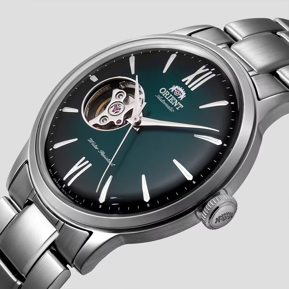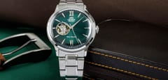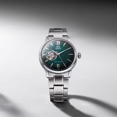 Czasomierz Orient Classic Bambino Open Heart RA-AG0026E10B to elegancki funkcjonalny męski zegarek do codziennego użytku jak i na wyjątkowe okazji. Czytelną, zieloną tarczę przykryto sferycznym szkiełkiem mineralnym, dobrze chroniącym zarówno przed ewentualnymi zarysowaniami. Czasomierz działa w oparciu o niesłychanie dokładny japoński mechanizm z automatycznym naciągiem.