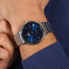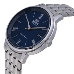 Czasomierz Orient Contemporary Symphony Roman RA-AC0J03L10B to elegancki funkcjonalny męski zegarek do codziennego użytku, jak i na wyjątkowe okazję. Czytelną, granatową tarczę przykryto sferycznym szkiełkiem mineralnym, dobrze chroniącym zarówno przed ewentualnymi zarysowaniami. Czasomierz działa w oparciu o niesłychanie dokładny japoński mechanizm z automatycznym naciągiem. Model Orient RA-AC0J03L10B wyposażono dodatkowo w datownik dni miesiąca, zlokalizowany przy godzinie 3.