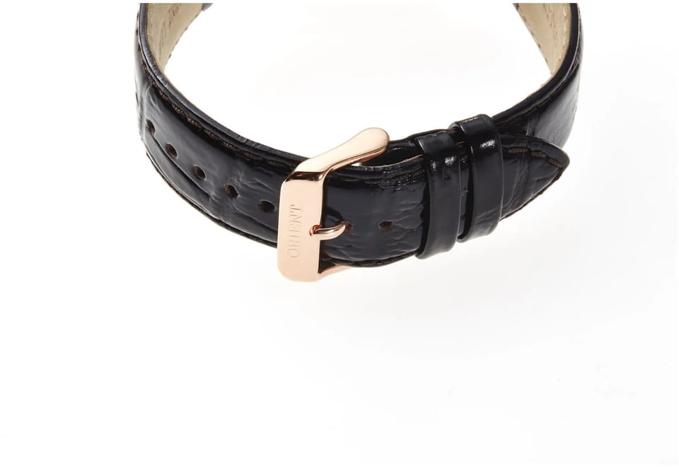Zegarek ten posiada brązowy skórzany pasek oraz kopertę w kolorze różowego złota, wykonaną z wysokiej jakości stali nierdzewnej. Klasa wodoszczelności czasomierza to WR30