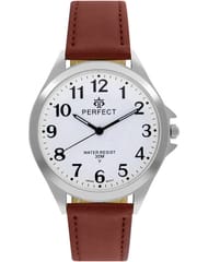 Marka: Perfect Mechanizm: Kwarcowy Tarcza: Analogowa Koperta: Wysokogatunkowa stal Szkiełko: Mineralne Pasek: Skóra naturalna Podświetlenie: Fluorescencja Wodoszczelność: 3 ATM