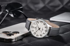 Ten zegarek to kwintesencja męskiej elegancji. Srebrna koperta i tarcza tworzą spójną, minimalistyczną całość, emanującą subtelnym luksusem. Czarne indeksy oraz fluorescencyjne wskazówki zapewniają doskonałą czytelność w każdych warunkach. Czarny pasek, starannie wykończony czarną nitką, dodaje nowoczesnego charakteru.