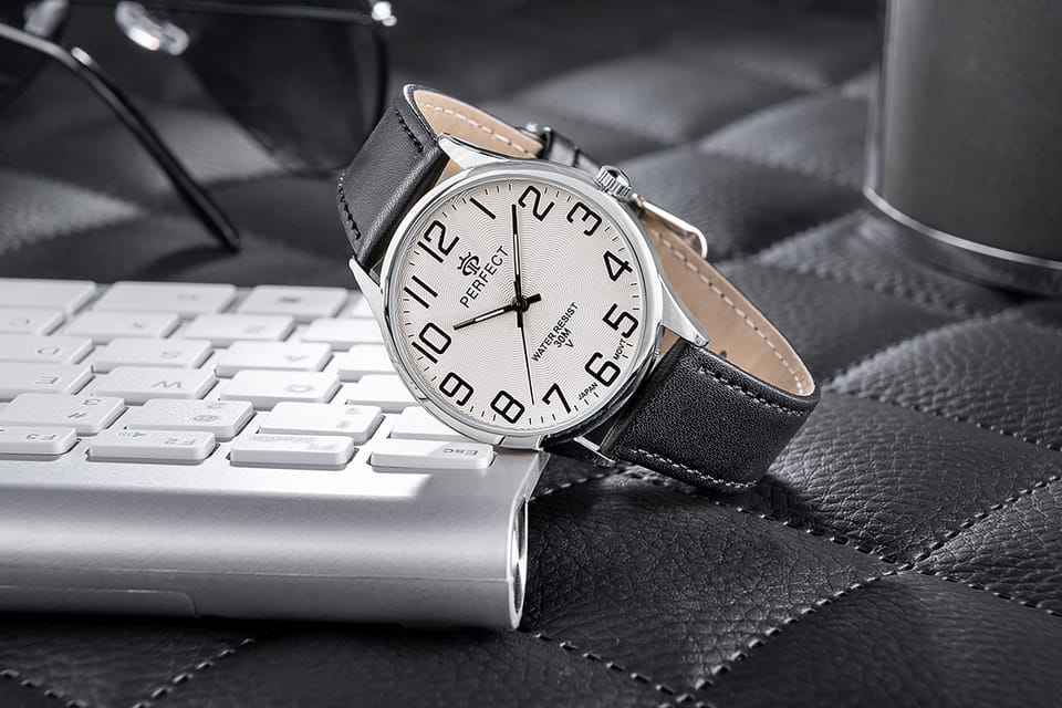 Męski zegarek Perfect wyróżnia się minimalistycznym designem, z klasycznym wskazaniem godzin i minut oraz sekund. To proste, a zarazem eleganckie rozwiązanie, które dodaje męskiej dłoni wyjątkowego szyku, ale także podkreśla jej charakter i klasę.