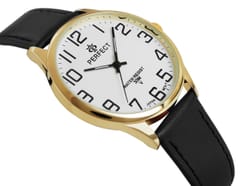 Skórzany pasek tego zegarka to kwintesencja klasy i wygody. Wykonany z najwyższej jakości materiału, komfortowo dopasowuje się do nadgarstka, oferując nie tylko trwałość, ale też elegancki wygląd. Jego miękkość zapewnia komfort noszenia na co dzień, a perfekcyjne wykończenie podkreśla charakterystyczny styl marki Perfect.